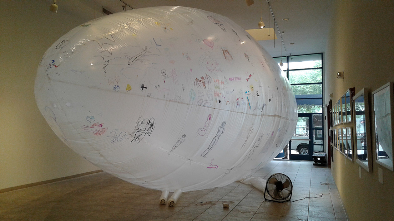 The final event that is shown here took place in the Yosemite Lake area, adjacent to the university campus. We launched into the sky a large flight device made of translucent plastic.