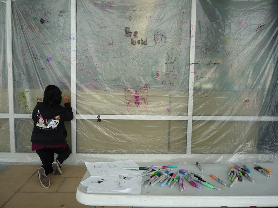 The action of participation of the public to draw lasted several days. We offered the plastic in different places of the city and the university campus. We were in the local art fair where the participation of the public was incredible.